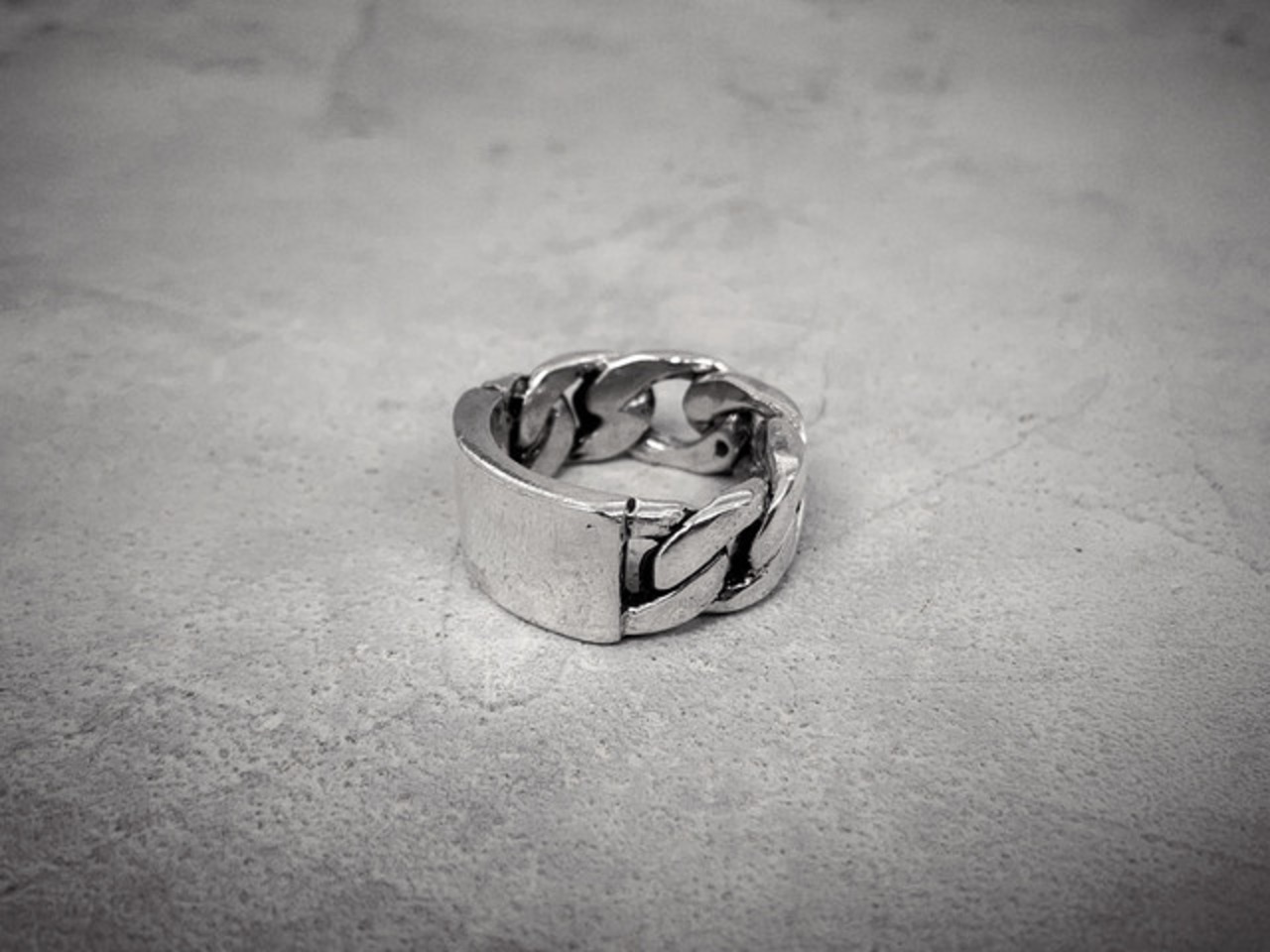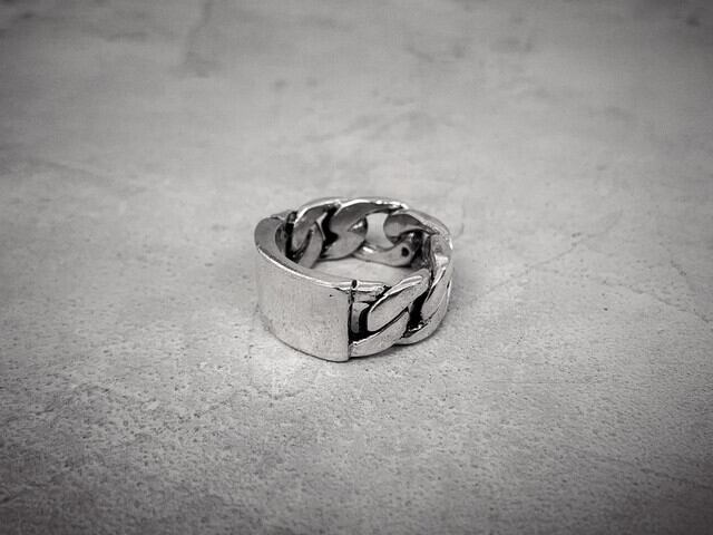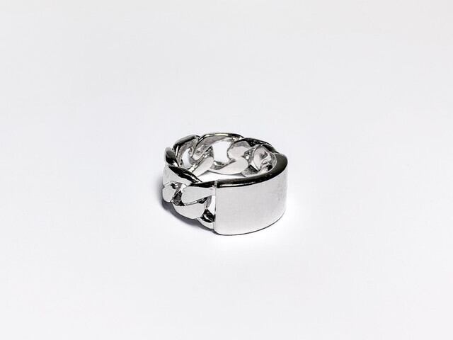 chain面とID plate面との二面性を兼ね備えており、単品でもインパクトあるリングです。
