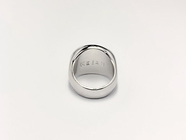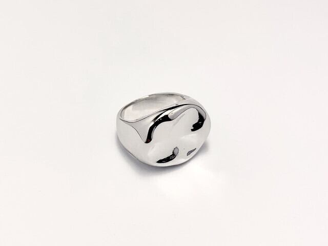 自然物のような歪みあるディテールと、丹念な磨きあげたシルバーの輝きが特徴的なリングです。
